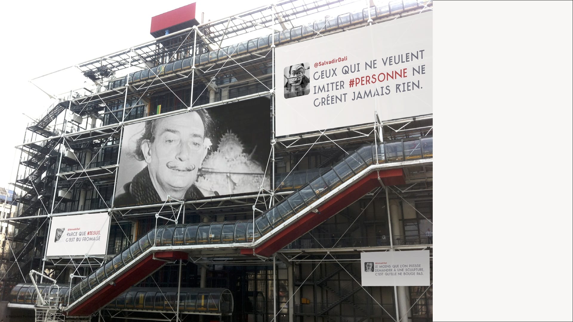 À l’occasion de l’exposition Dali au Centre George Pompidou, création et scénarisation d’un dispositif numérique interactif. L'idée était d'interpeller et rendre compte du personnage qu'était Salvator Dalí au travers d'un dispositif numérique interactif, visant à mettre un pied dans l'exposition sans y être physiquement (file d'attente).